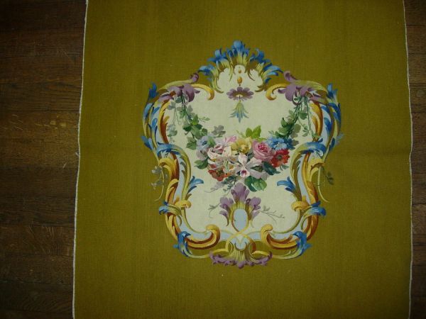 Du meuble n° 18ter de la manufacture de Beauvais, à motif de fleurs, retissage sur fond vert du meuble n° 18 dessiné par Auguste Mangonot en 1893.