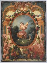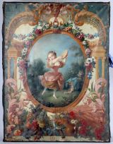 Reproduit dans A. Guérinet ("Recueil de 325 peintures et tapisseries de la Manufacture nationale de Beauvais... Époques Louis XIV, Louis XV... époque actuelle jusqu'à 1903", Paris, 1908), pl. 284-285, qui indique que les fleurs sont de Chabal-Dussurgey et la figure d'après Boucher.