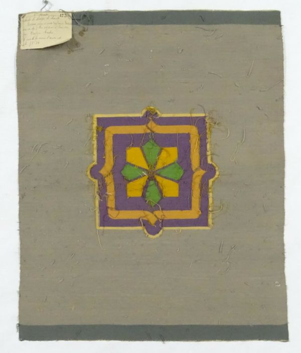 Etude d'assise de chaise en tapisserie tissé en basse lice dans l'atelier école de Beauvais du 4 mai au 17 juin 1920 d'après un modèle de Séguin Bertault