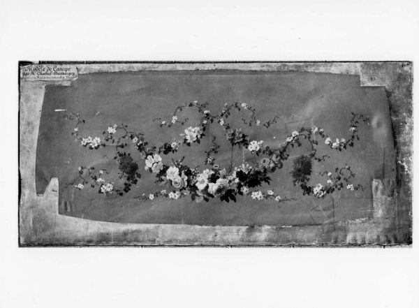 Disparu dans l’incendie des Tuileries, le meuble fut retissé, sous l’appellation de « meuble n° 10 », sur un fond « vert grisâtre », à partir de 1878 (Arch. M.N., B 184, f. 52-53). Un écran fut offert à la grande-duchesse d’Oldenbourg en 1899, et plusieurs pièces furent montrées lors des expositions universelles de Paris en 1889 à Paris et de Chicago en 1893. Certaines d’entre elles ayant à leur tour brûlé lors de l’exposition de Chicago en 1893, le retissage se poursuivit jusqu’en 1902 : une part importante du meuble fut déposée en 1900 et 1902, tout comme le meuble no 12, à l’ambassade de France à Washington. Entre 1902 et 1912, sept écrans ou dossiers de chaise formant petit écran furent retissés, en partie à titre d’étude (voir GMMP 11055 à 11060) ; le tissage fut encore repris entre 1913 et 1918 pour trois chaises, un fauteuil, un écran et deux tabourets de pied.