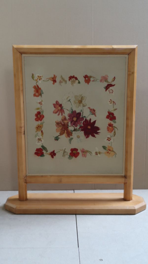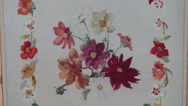 La tapisserie est tissée en 1916 en laine et soie par Delaware et Huet (registre production Beauvais n° 1122). Un bouquet central, encadré d'une guirlande de capucines en carré, se détache sur un fond gris bleuté.