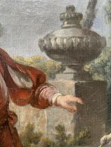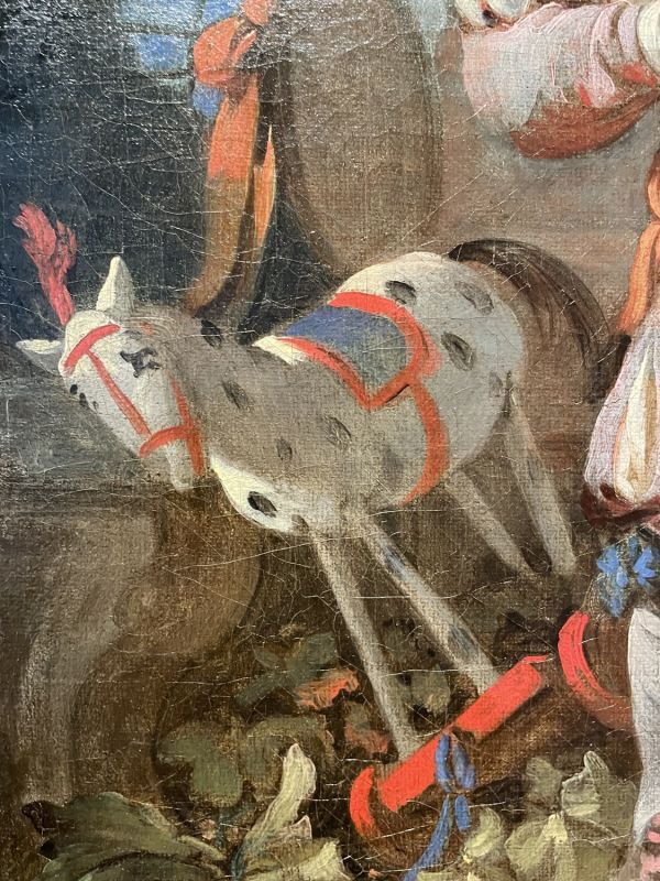 Peinture sur toile. Modèle de tapisserie pour un dossier de siège de la série des "Jeux russiens", tissée à Beauvais dès 1770.