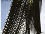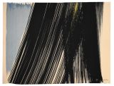 Sur un fond blanc se détachent de grandes lignes verticales blanches et noires. A gauche : partie blanche.