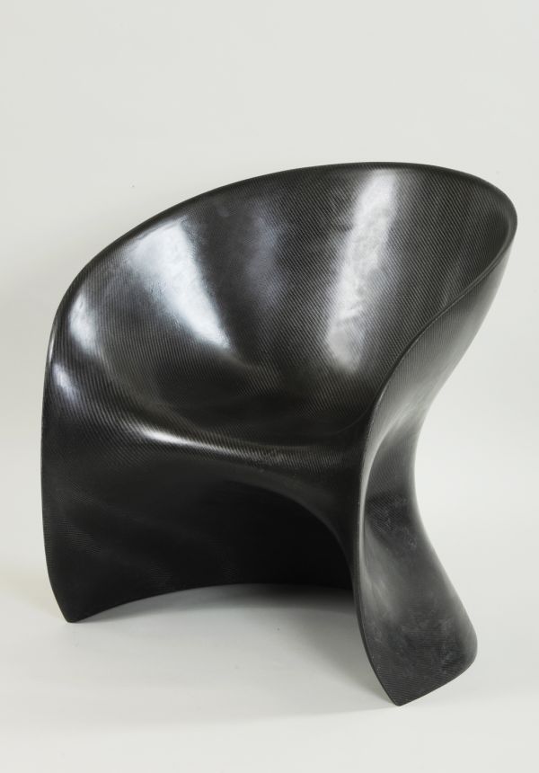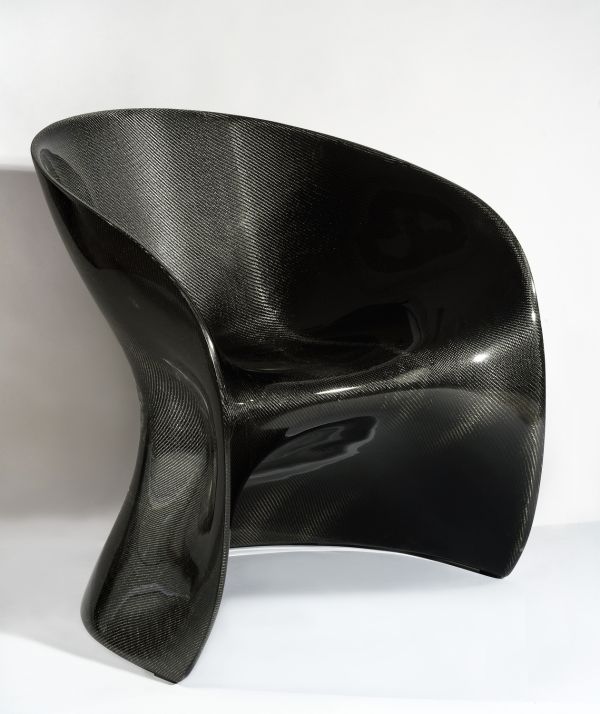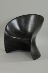 Fauteuil aux lignes sobres qui magnifient la noirceur et la brillance du matériau.