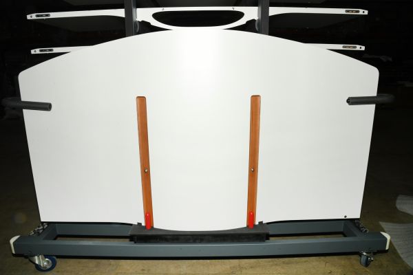 Ceci est un plateau complémentaire de rechange réalisé pour l’ensemble mobilier de la Table de réunion du Conseil des ministres au Palais de l’Elysée. La table ne comportant que 2 plateaux d’extrémité.