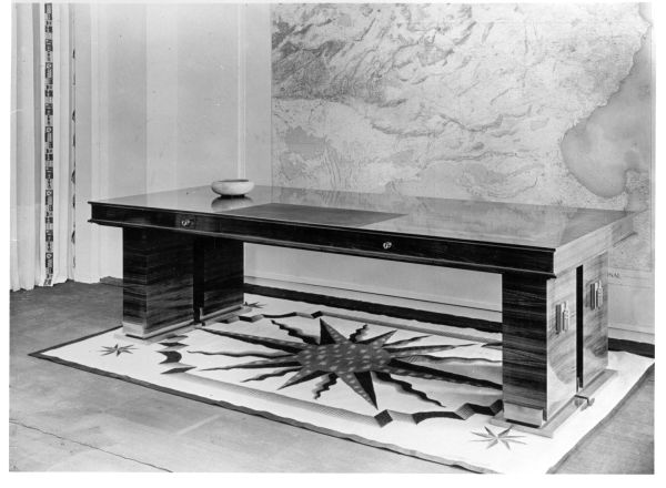 Achat Muller et Rigollet du 16 août 1945, au sein d'un ensemble composé d'un bureau (GME 10183), d'une bibliothèque (GME 10184), d'une table à cartes (GME 10185), d'une table à téléphone (GME 10186), d'un fauteuil de bureau (GMT 14626), de six fauteuils confortables (GMT 14627) et de quatre fauteuils (GMT 14628).