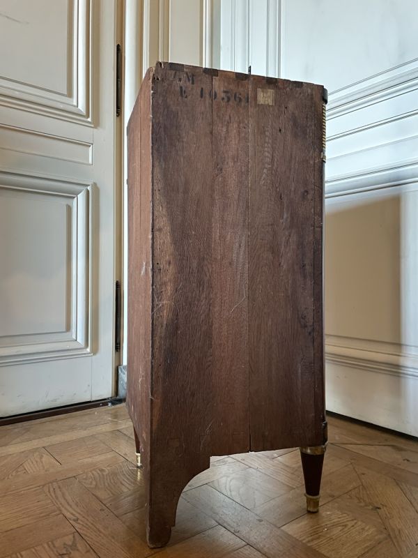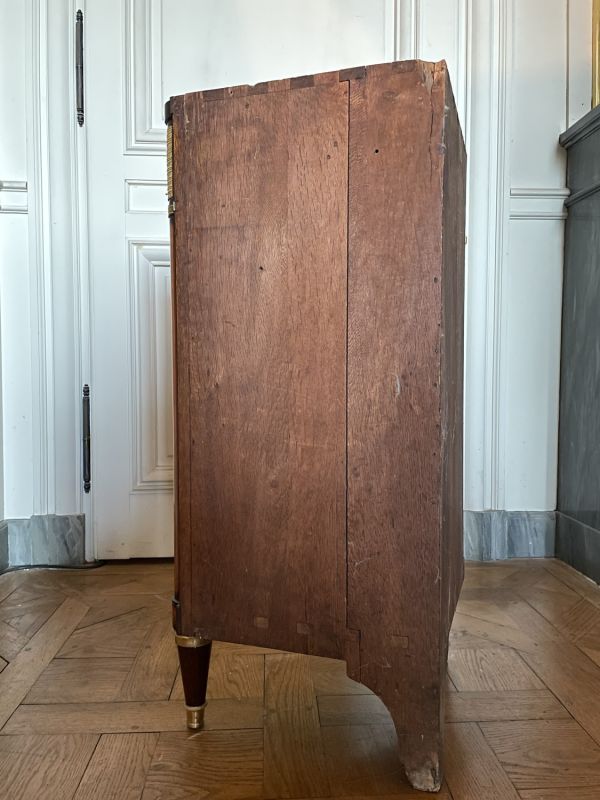 Livrée vers 1789 pour Mesdames - Madame Adélaïde (1732-1800) et Madame Victoire (1733-1799), filles de Louis XV et tantes de Louis XVI - probablement dans leur appartement du château de Versailles. En effet, la provenance des collections de Mesdames est indiquée lors de la saisie révolutionnaire. Or, le meuble ne présente pas le BV couronné qui marque tous les meubles de Bellevue ; leurs cabinets et salles à manger étaient meublés par le roi à Fontainebleau ; Mesdames n'habitèrent pas les Tuileries après 1789.