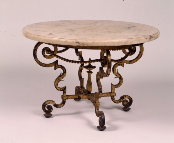 Table acquise par le Mobilier national le 6 juin 1947 auprès de G. Poillerat avec six autres guéridons destinés au palais de l’Élysée (GME 10517 à GME 10523). En place à l’Élysée (salon des Dames, 1er étage) jusqu'en 1960. Meuble présenté dans le cadre de l'exposition "Le Chic ! Arts décoratifs et mobilier français de 1930 à 1960", Paris, Mobilier national, octobre 2022-janvier 2023.