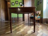 Dessus gainé à frise à coins et champ rond. Deux tablettes latérales tirantes.
