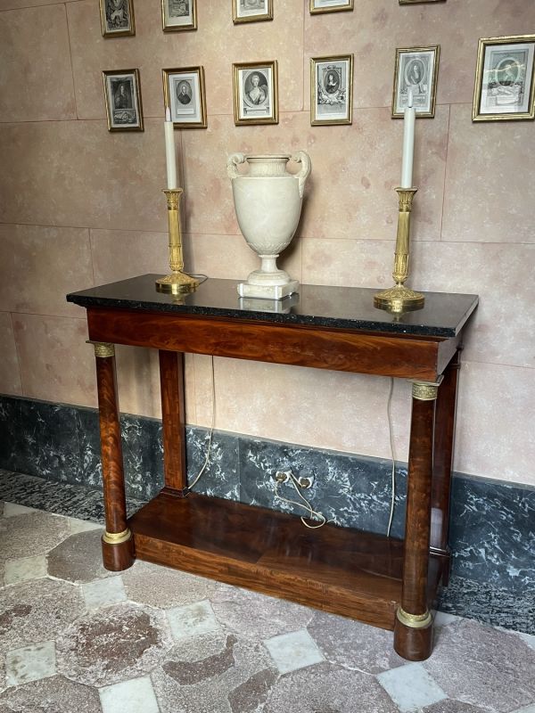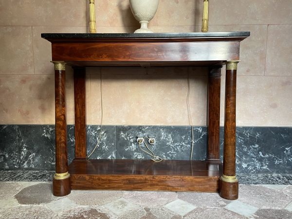 Console d'époque Empire en bois d'acajou et bronze doré.