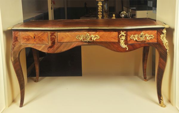 Bureau d'époque Louis XV en bois de rose, satiné et bronze doré
