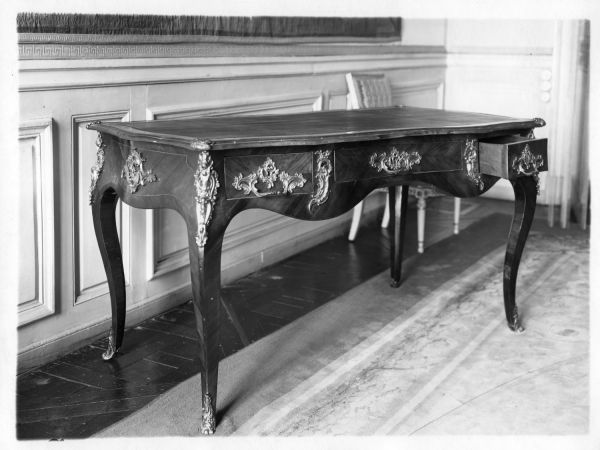 Inscrit à l'inventaire annexe du Mobilier national, en février 1932, le bien étant au ministère de la Marine, dans le cabinet du ministre (Arch. Mob. nat., inventaire annexe des meubles, f° 53 v°, n° 443).