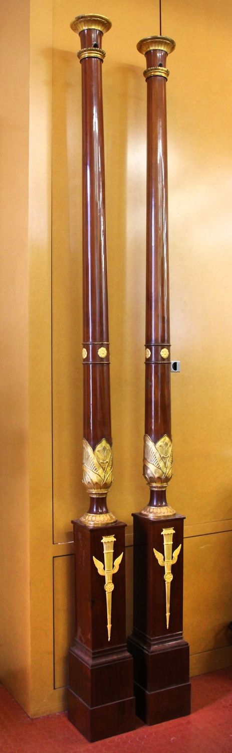Colonne intégrée initialement au lit GME 8937, exécuté par la société « Jacob Desmalter et Cie », association de François-Honoré-Georges Jacob, dit Jacob-Desmalter (1770-1841), et de son père Georges (I) Jacob (1739-1814), menuisiers-ébénistes, active de 1803 à 1813.