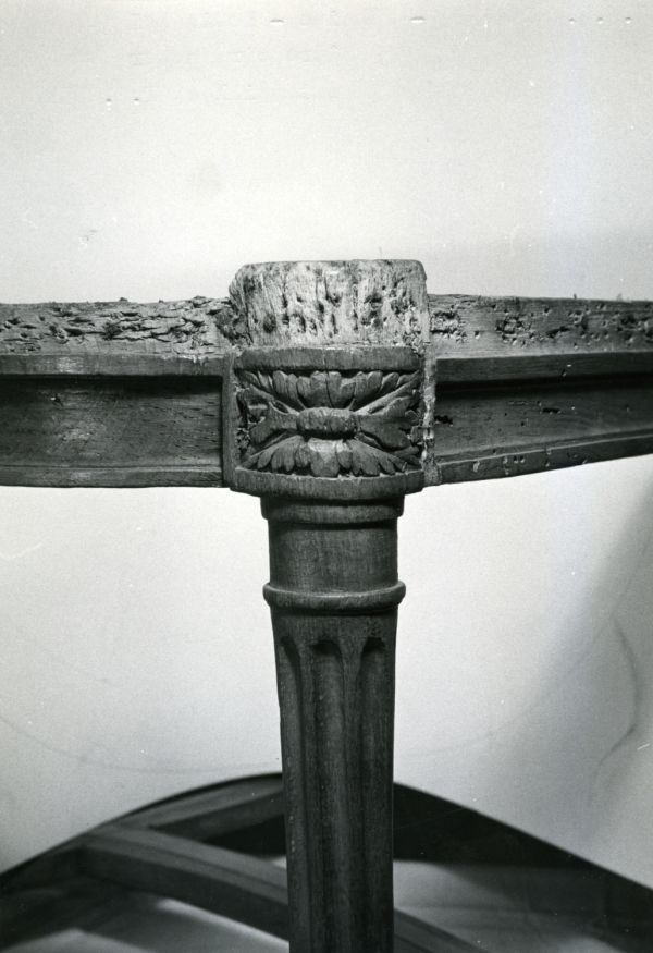 Inscrite en 1894 à l'inventaire du Mobilier national, dans une suite hétérogène de trois en réserve (Arch. Mob. nat., MM6427, f° 161 v°, n° 1542 ; id., M69, f° 184 v°, n° 1542).