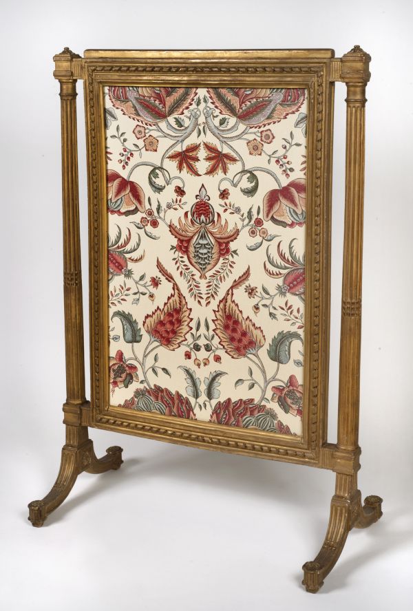 Inscrit à l'inventaire du Mobilier national en 1894, dans l'ensemble complet de seize pièces en réserve, auquel s'ajoute un second écran acheté à la vente Séchan (GME 1580/17) [Arch. Mob. nat., inventaire des meubles d'ébénisterie, vol. 1, f° 167 v°, n° 1580].