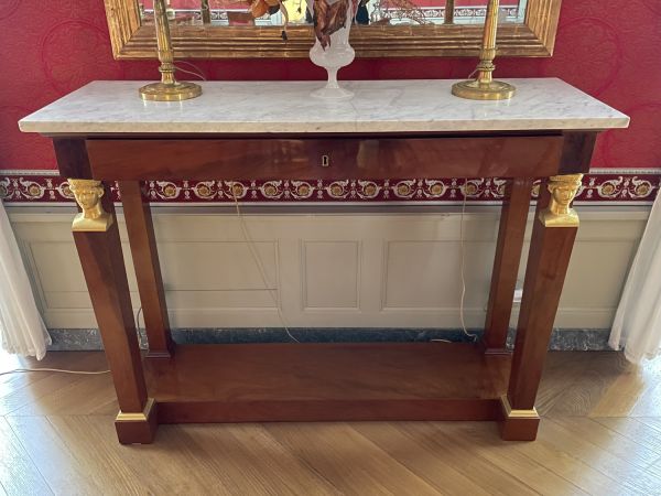 Console d'époque Empire en bois d'acajou et bronze doré.