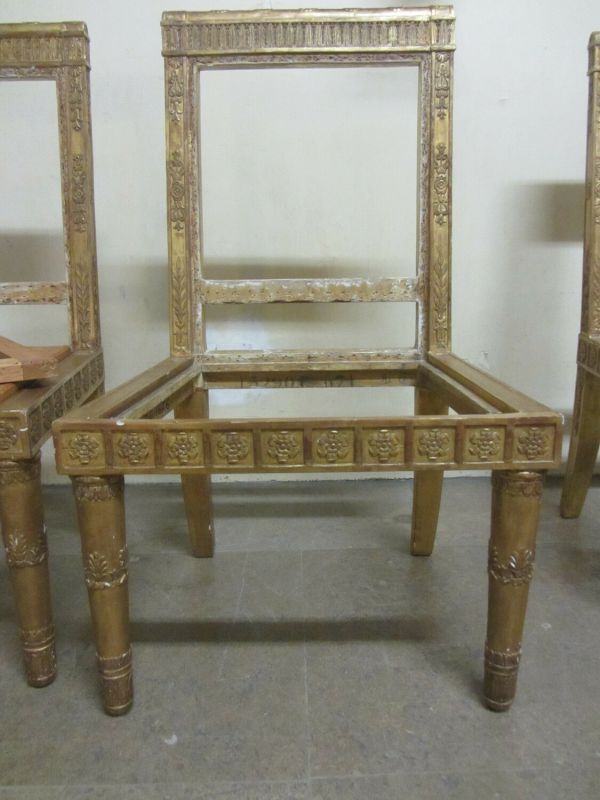 Chaise en bois doré, estampillée "P. Marcion".
