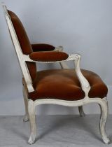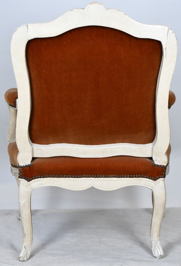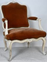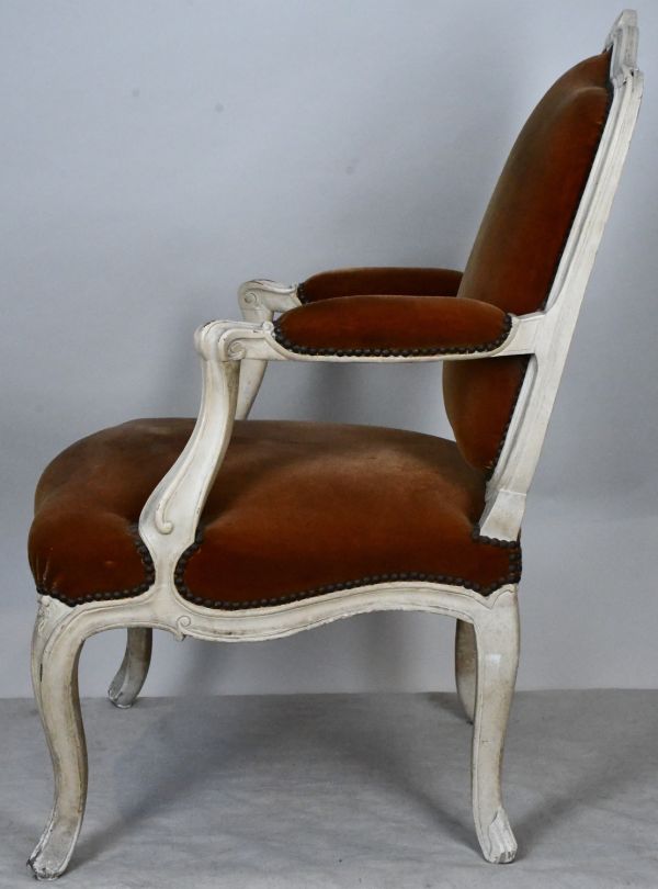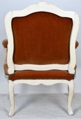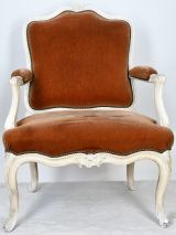 Fauteuil à la reine d'époque Louis XV en bois de hêtre peint.