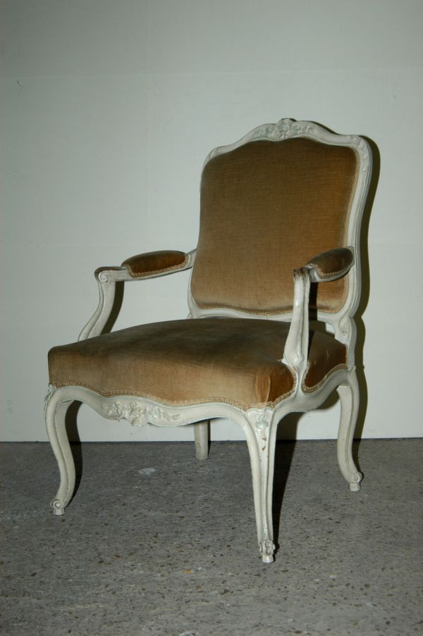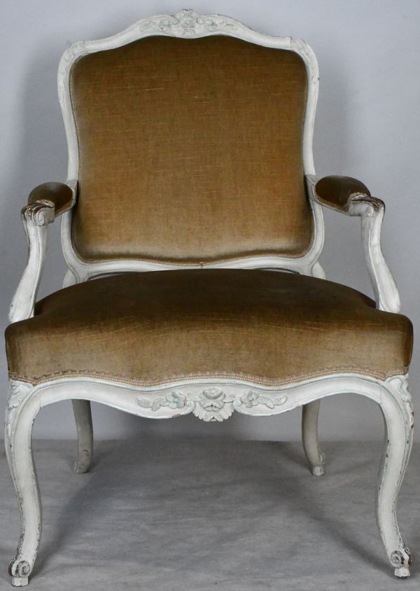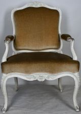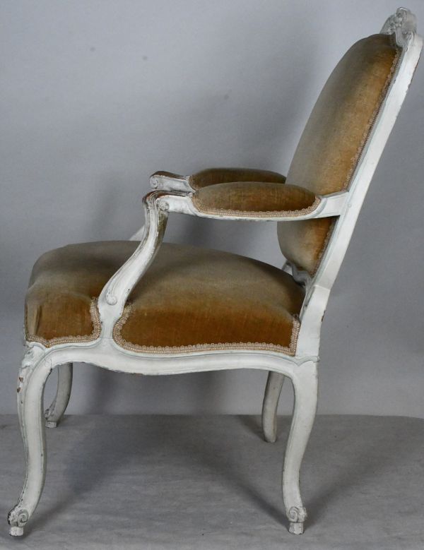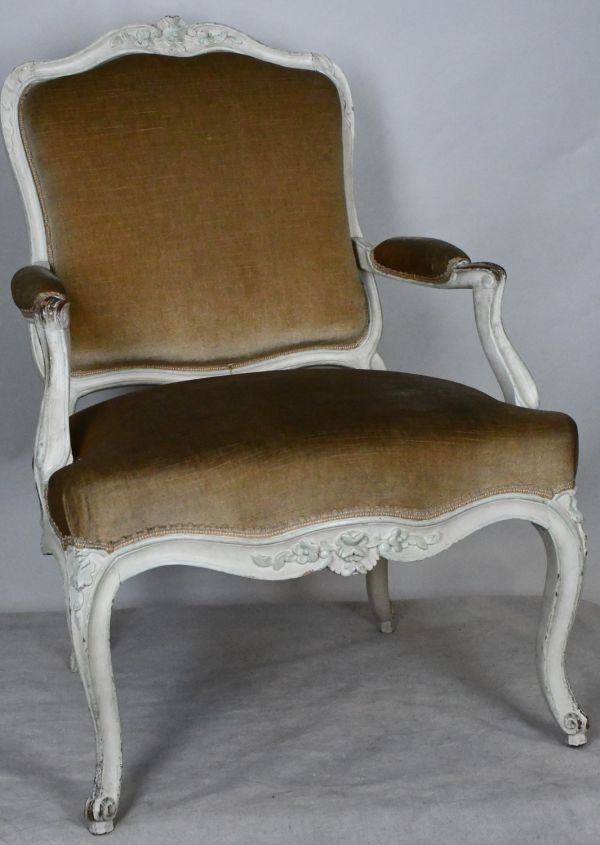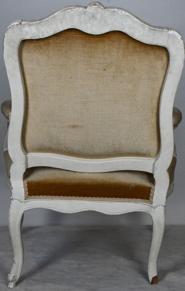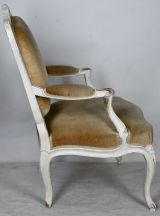 Fauteuil à la reine d'époque Louis XV en bois de hêtre peint.