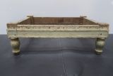 Tabouret de pied en bois peint, quatre pieds tournés, ceintures droites à listel.