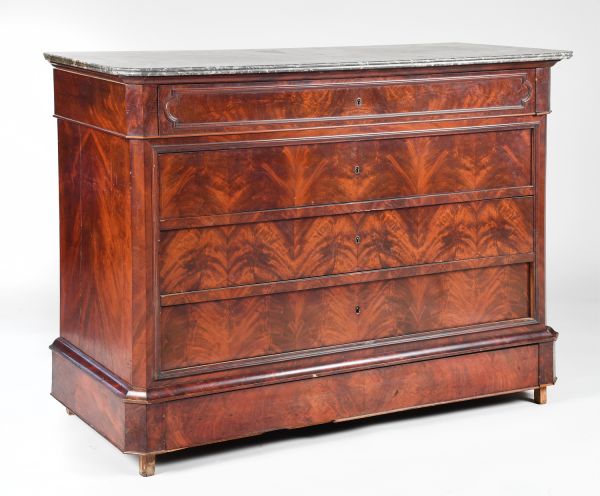 Ceinture à un tiroir, moulure en chapeau de gendarme, entrée de serrure à filet.
