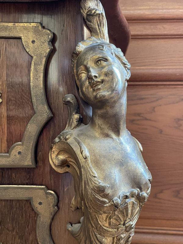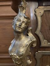 Montants enrichis de deux figures féminines en "espagnolette", prolongées en un jonc enrubanné jusqu'aux sabots en volutes le tout en bronze doré.