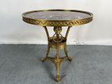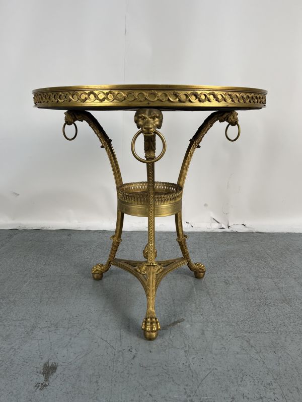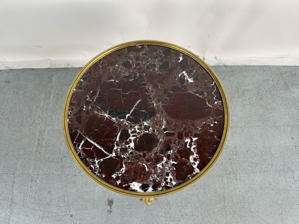 Guéridon en bronze doré et marbre.