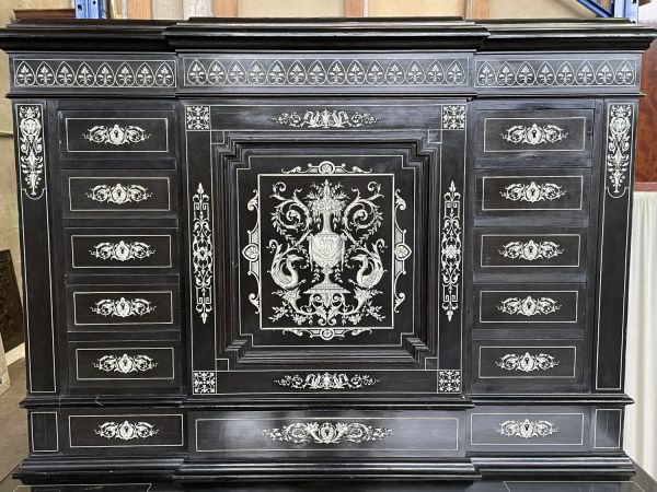 Cabinet, en bois noir incrusté d'os, à la manière du XVIIe siècle.