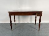 Quatre pieds tournés, double balustre et bagués. Sabots cuivre circulaire à roulettes.