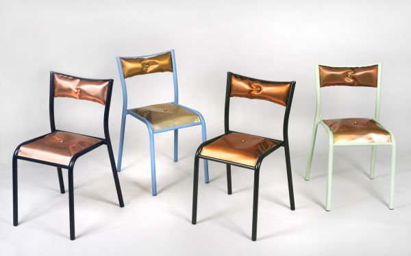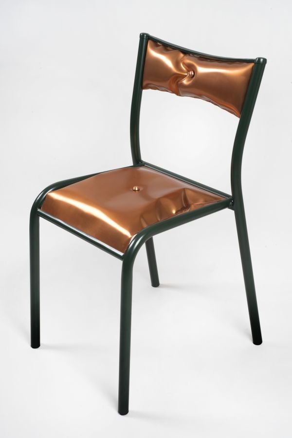 Chaise tubulaie métal laqué et cuivre gonflé sous pression.