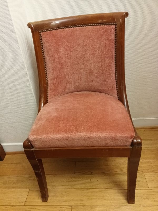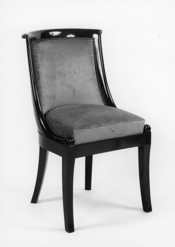 Chaise gondole, pieds en sabre.