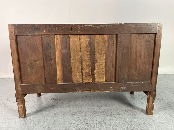 Pieds antérieurs tournés et bagués, pieds postérieurs droits. Côtés à un panneau. Montants droits.