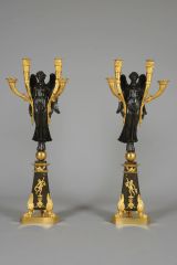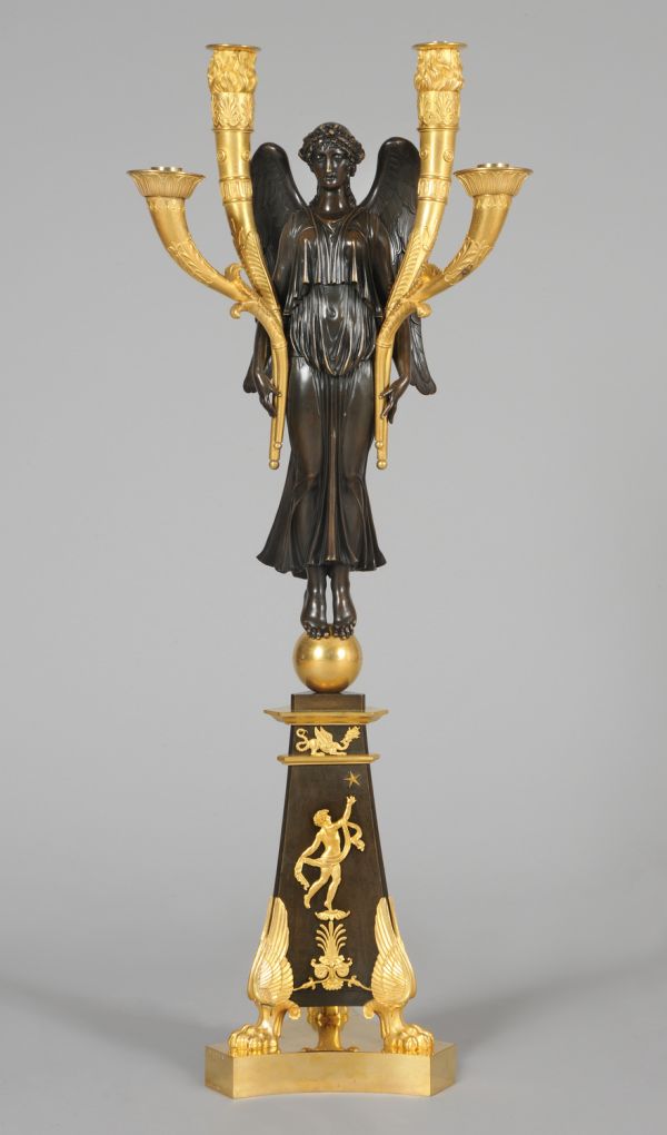 Paire de candélabres provenant des achats de Joachim et Caroline Murat pour leur palais de l’Élysée. Elles se trouvent sous la Restauration au premier étage, dans la bibliothèque (GML 11204 et 11205).