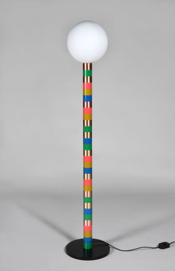 La lampe Donna s’inscrit quant à elle dans la continuité des bougeoirs iconiques de l’Atelier Marine Breynaert : formes et couleurs à assembler, contraste des matières ; une pièce joyeuse qui se distingue autant par elle-même qu’en composition avec d’autres objets. La surface brossée du laiton et du cuivre dialogue avec la brillance des couleurs vives. La rondeur du verre soufflé ponctue le rythme pour un objet à la fois pop, léger et raffiné.