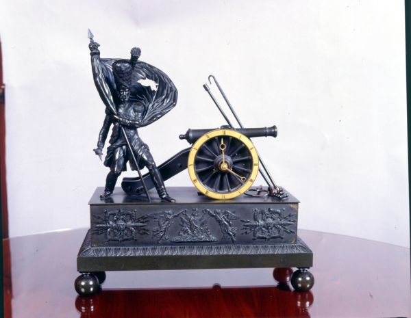 Cette pendule exalte les campagnes militaires de l’Empire et le courage malheureux. Une fois la branche aînée des Bourbons renversée en juillet 1830 et remplacée par le « roi des Français » Louis-Philippe Ier, cette pendule fut acquise par le Garde-meuble de la Couronne en 1832, au début de la Monarchie de Juillet, qui remettait officiellement à l’honneur la geste impériale.