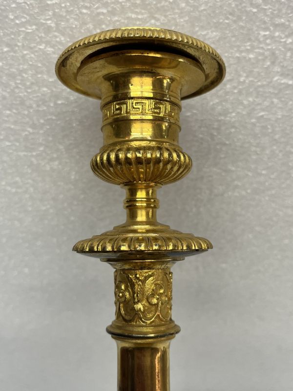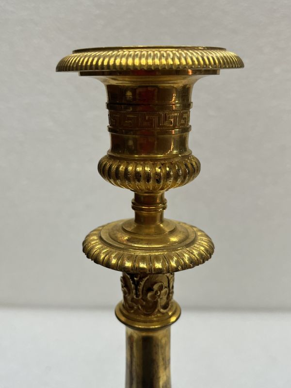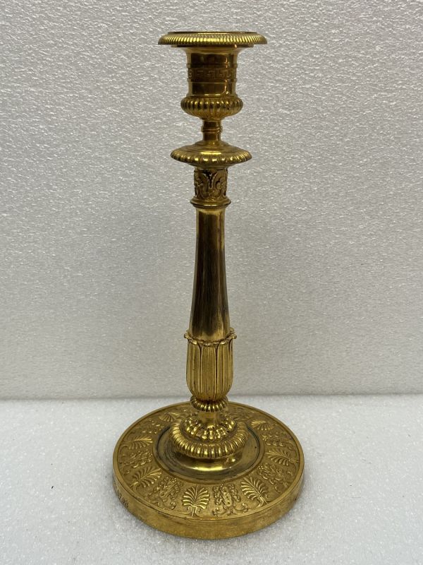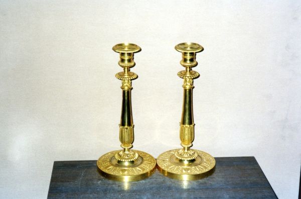 Paire de flambeaux mentionnée dans l’inventaire de 1818 du château de Saint-Cloud dans l’appartement n°27 attribué à l’intendant du Garde-meuble. Répertoriée en 1843 dans la première chambre à coucher du baron Atthalin, elle est renvoyée au Garde-meuble en 1849.