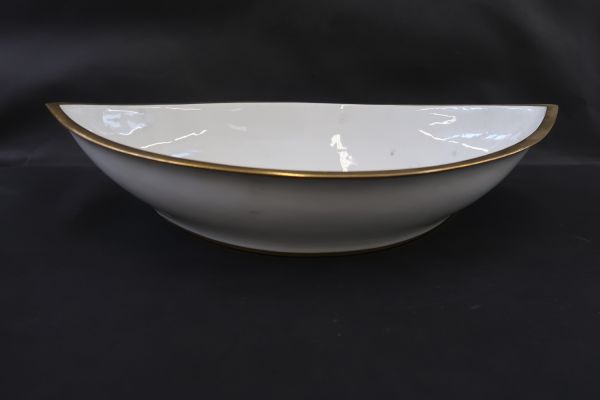 - Cuvette (rince-mains) en navette - en porcelaine blanche de Sèvres à large filet or sur le bord.