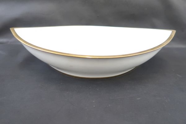 - Cuvette (rince-mains) en navette - en porcelaine blanche de Sèvres à large filet or sur le bord.