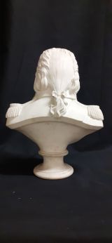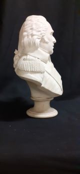 Ses yeux, marqués par des rides, sont portés vers la droite et sa bouche est légèrement entrouverte.