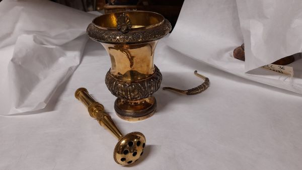 Le goupillon, rapporté, est en métal doré.