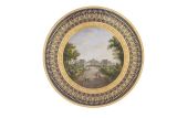 Pâte dure marbré bleu, décor, fond peint par Lebel et représente une Vue de Stupinis du côté de Turin, Fab. de 1816.