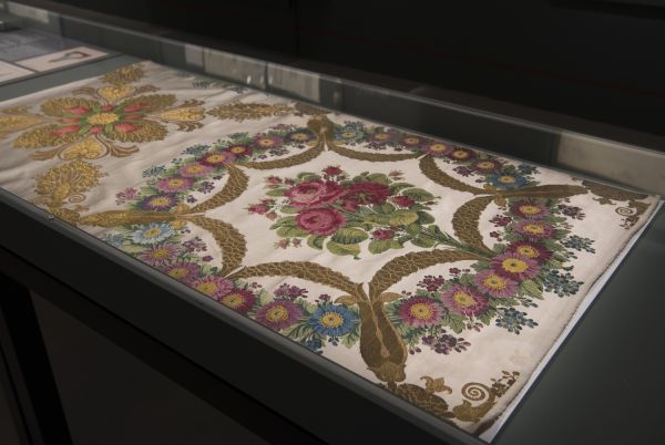 Exécuté par la maison Bissardon, Cousin et Bony, à Lyon, ce meuble textile était destiné à la chambre à coucher de l'appartement de l'impératrice Marie-Louise au palais de Versailles, mais n’y fut jamais mis en place.