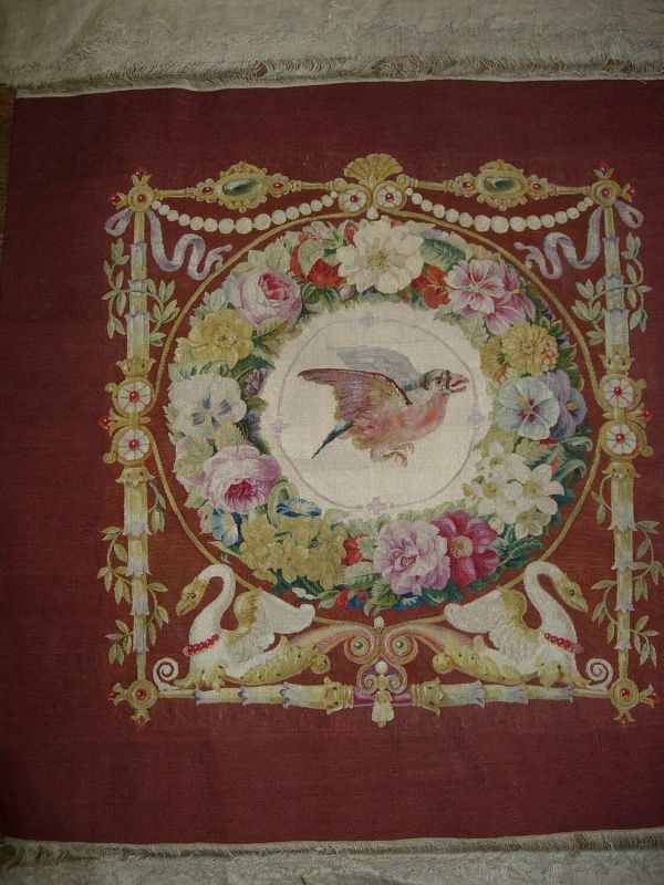 À rapprocher du meuble à dehors brun en laine avec intérieur à fond blanc à oiseaux, fleurs et ornements coloriés, dit "meuble aux Oiseaux", originellement commandé en 1829 pour le salon de la duchesse de Berry au pavillon de Marsan, au palais des Tuileries. Les cartons de ce meuble (Beauvais 48) furent repris par le peintre Friedrich Starke à partir de 1833 ; le tissage s'échelonna entre 1832 et 1841 ; une partie des pièces furent finalement utilisées au château de Saint-Cloud.