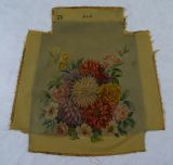 Décor floral de dahlias, fond havane. Section carrée, découpes aux angles.