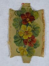 - Manchette de fauteuil. Motif floral de capucines sur fond havane.