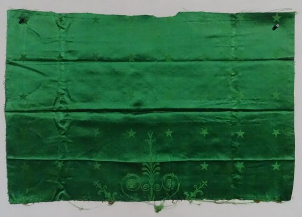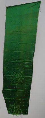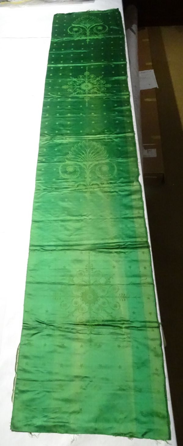 GMMP-1739-001-026 : 0,190m x 2,020m. Lé de tissu pour dossier de siège, composé de quatre fragments cousus ensemble en continu.