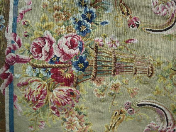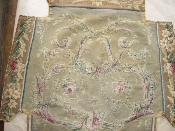 Ensemble de garnitures de deux causeuses (fond, dossier et manchettes) , 4 fauteuils ( fond et manchettes) et 4 chaises. Laine et soie.