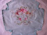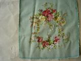 Guirlande de fleurs sur fond de laine vert d'eau.