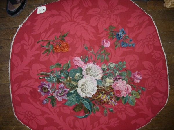 Fauteuil: fond 0.854 x 0.785 m; dossier 0.62 x 0.61 m; entoilage 0.53 x 0.53 m; manchettes 0.33 x 0.21m