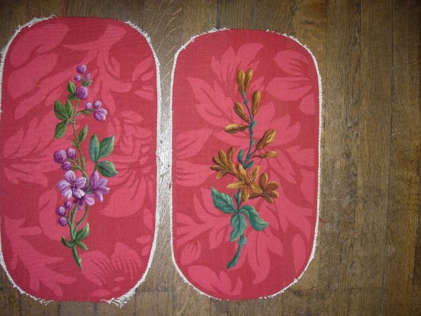 Canapé: fond 2.29 x 1.02 m; dossier 2.06 x 0.68 m; entoilage 2 x 0.61 m; manchettes 0.43 x 0.24 m